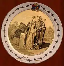 Faïence fine plate one of a monochromatic transfer-printed series commemorating events of Greek independence, Montereau, ca 1830.