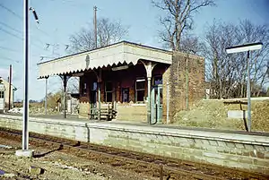 - ↑ Butt, R.V.J. (1995). The Directory of Railway Stations. Yeovil: Patrick Stephens Ltd. pp. 48, 71. ISBN 1-85260-508-1. R508.