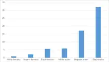Homicide victimization rate for whites and blacks, according to the US Bureau of Justice Statistics.[32]