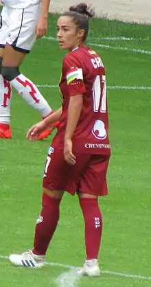 She is the first non-Basque player to play for Real Sociedad.[4] Following signing for Logroño in 2019, she provided an assist on her debut.[5] In 2020, she renewed her contract with Logroño.[6] In July 2021, she signed for Sporting Huelva, becoming their fifth signing of the summer.[7]