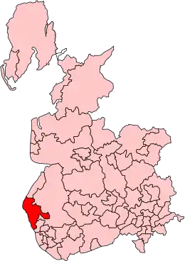 1974–1983: The Borough of Crosby, the Urban District of Formby, and in the Rural District of West Lancashire the parishes of Altcar, Ince Blundell, Maghull, Sefton (part), and Thornton.