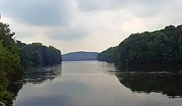 The Cross River Reservoir is a reservoir in the New York City water supply system located directly east and north of the northern Westchester County, New York, Hamlet of Katonah.[2] Part of the system's Croton Watershed, it lies within the towns of Bedford, Lewisboro, and Pound Ridge, about 1 mile (1.6 km) east of the village of Katonah, and over 25 mi (40 km) north of New York City.[1] It was constructed around the start of the 20th century by impounding the Cross River, a tributary of the Croton River, which eventually flows into the Hudson River.