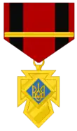 The Cross of Merit (Ukrainian: Хрест Заслуги) was an award of Ukrainian Insurgent Army. It awarded for distinguished services to the state and people of the Ukrainian army. The Order was instituted on January 27, 1944, by the Ukrainian Supreme Liberation Council leaders, Roman Shukhevych and Dmytro Hrytsai.