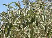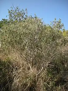 The plant grows as a shrub, 3–4 metres in height, with narrow, strongly discolourous leaves approximately 5 cm in length. The upper leaf is a light to glaucous green, the lower leaf appears silver-white or brown due to a dense covering of scales.[1][2] The natural habitat of Croton phebalioides is monsoon forest, rainforest and vine thickets, usually in hills of mountains.