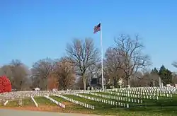 On October 27, 1969, Major Robert W. Hayes of the 774th Tactical Airlift, was killed when his plane exploded over Chu Lai, in what was then South Vietnam. He is interred in Section 10, the final burial in Crown Hill's National Cemetery.[13] As of December 31, 1998, the National Cemetery includes 795 burial sites.[6] Crown Hill Cemetery, including the National Cemetery, was listed on the National Register of Historic Places on February 28, 1973. The National Cemetery portion, which is listed separately, was added to the National Register on April 29, 1999.[6]