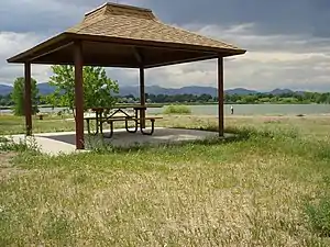 Crown Hill Park is a 242-acre (0.98 km2) recreation area operated by Jefferson County Open Space in unincorporated Jefferson County, Colorado. The park is located between the cities of Wheat Ridge and Lakewood. Within the borders of the park is a National Urban Wildlife Refuge. Activities at the park include picnicking, hiking, biking, horseback riding, wildlife viewing, walking, roller blading, jogging, and fishing.