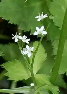 Cryptotaenia japonica, also called East Asian wildparsley,[2] Japanese cryptotaenia,[3] Japanese honewort,[3] white chervil[4] mitsuba,[5] Japanese wild parsley, stone parsley, honeywort, san ip, trefoil, and san ye qin (from Chinese: 三叶芹; pinyin: sānyè qín) is a plant species native to Japan, Korea, and China.[6] The plant is edible and is commonly used as a garnish and root vegetable in Japan,[7] and other Asian countries.[8]