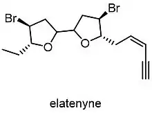 9. Hall, J. G.; Reiss, J. A. (1986). "Elatenyne—a Pyrano[3,2-B]Pyranyl Vinyl Acetylene From the Red Alga Laurencia elata". Aust. J. Chem. 39 (9): 1401–1409. doi:10.1071/ch9861401.{{cite journal}}: CS1 maint: multiple names: authors list (link)