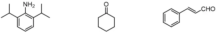 Structure of diisopropylaniline and cyclohexanone and cinnamaldehyde
