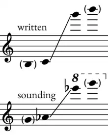 Notated: (B3)C4–G6(B6) Sounding: (G5)A-flat5–E-flat7(G7)