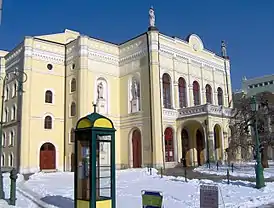 The Csokonai Theatre is the oldest and largest theatre in Debrecen, Hungary. It was named after one of the first Hungarian Modern Age playwrights, Mihály Csokonai, who lived and created many of his works in Debrecen.[1] The building was designed by Antal Szkalnitzky with Moorish styled ornamentations,[2][3] the theatre opened on Kossuth Lajos utca in 1865, with Róza Laborfalvi as Gertrude in a performance of József Katona's 1819 play Bánk bán.[4]