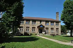 Cuba High School Annex, also known as the Crawford County Historical Society Museum, is a historic school building located at Cuba, Crawford County, Missouri. It was built in 1934 with funds provided by either the Civil Works Administration or the Works Progress Administration. It is a two-story, rectangular building built on a raised basement. It measures 60 feet by 30 feet and has a hipped roof. It is finished with random ashlar native stone laid in a “giraffe” pattern with grapevine joints.[2]: 6, 8