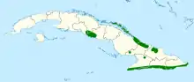 The Cuban gnatcatcher is found along much of the north and southeast coasts of Cuba and also in disjunct areas along the south coast. It inhabits xeric scrubland, mostly below 100 m (330 ft) of elevation.[3]
