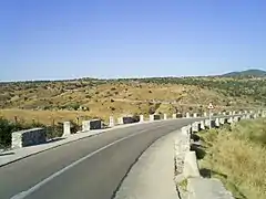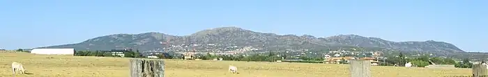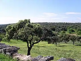 To the south of this mountain range, the terrain descends to the Monte de El Pardo, the third geomorphological unit through which the park runs, covering approximately 16 000 hectares.[8] The granitic materials give way to detrital and sandy elements, the result of the erosion of the Guadarrama and Hoyo mountain ranges, which form an undulating landscape of gentle hills, with an average altitude of 600 m. The Monte de El Pardo sits on an immature soil, easily eroded. Similar characteristics are found in Monte de Viñuelas, eastern appendix of El Pardo.