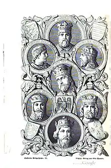 - ↑ Langwald, Reiner (14 January 2013). Im Schatten der Kaiser: Helden, Heilige und Halunken im Mittelalter (in German). epubli. p. 65. ISBN 978-3-8442-4331-4. Retrieved 8 March 2022.
