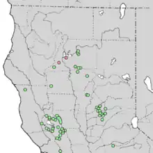 (Red circles indicate extinct populations.)