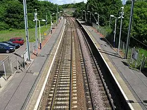 View from footbridge at Curriehill railway station, looking towards Edinburgh