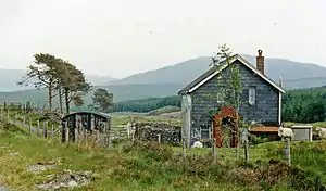 Cwm Prysor was a later addition to the line, opened in 1902. At 1,278 feet (390 m) it stood at the summit of the route in very thinly populated uplands with no obvious source of traffic, for example, the station house's nearest neighbour was a mile away.[12] Conversely, the people who did live and work in the area had no other obvious means of transport. The location served traffic purposes as much as being a point where goods and passengers boarded or alighted, in that: