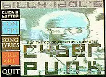 The special edition diskette, a Macintosh press kit entitled "Billy Idol's Cyberpunk", was an industry first.[5] It included album clip art, sample sound bytes, a biography by Mark Frauenfelder, lyrics, and a cyberculture bibliography by Gareth Branwyn.[8] Frauenfelder appeared on a segment of MTV News to describe the diskette's features.[12] Plans were considered by EMI/Chrysalis to re-release the album in the following fall with an updated CD-ROM if the album was successful.[14] As CD-ROMs were prohibitively expensive at the time of production, this was anticipated as a potential benchmark event for the music industry.[4] However, this failed to materialise due to the critical and financial failure of the album.