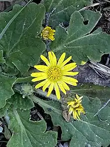 Cymbonotus lawsonianus, commonly known as bears ear,[2] is a species of small shrub in the family Asteraceae from southeastern Australia. It has been described as Arctotis lawsoniana.[3] It is one of three species in the small genus Cymbonotus.[4] It was named in honour of the explorer William Lawson.[5]