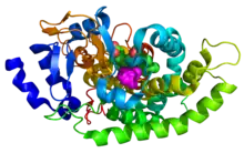 - ↑ Hasemann CA, Kurumbail RG, Boddupalli SS, Peterson JA, Deisenhofer J (January 1995). "Structure and function of cytochromes P450: a comparative analysis of three crystal structures". Structure. 3 (1): 41–62. doi:10.1016/s0969-2126(01)00134-4. PMID 7743131.