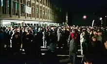 Following the "technical fault" screens and prevention of the news broadcasts by Bobošíková tens of thousands of people marched in the streets of Prague and other Czech cities and towns, calling for restoration of freedom of the press, demanding an end to what they perceived as censorship at ČT.[1] The demonstrations even drew support from the International Federation of Journalists and made world headlines.[1][4] The demonstrators also demanded Bobošíková's resignation and the dismissal of the allegedly biased general manager Jiří Hodač. Hodač was even briefly hospitalized during the events.[5]