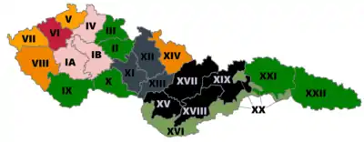The Nové Zámky senatorial district consisted of the Nové Zámky 16th electoral district and the Košice 20th electoral district, two districts that together hosted around 96% of the Hungarian and 56% of the German population of Slovakia.[24][25][26] The percentage achieved by the Communist Party in the Nové Zámky 16th electoral district was the highest in the country in the 1929 vote.[24][18]