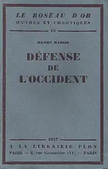 Défense de l’Occident (English: Defense of the West) was a French neo-fascist magazine founded by Maurice Bardèche and published from 1952 to 1982.[1] It was the most significant far-right magazine in post-WWII France,[2] providing an arena for the promotion of neo-fascist ideas and Holocaust denial.[3]