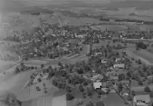 In addition to the still common agriculture industry, several other industries developed in the 18th-19th Centuries. Initially, cotton weaving and straw plaiting developed in the village. Then, between 1852-1935 the silk industry developed and between 1863 and 1950 the cigar industry was in the village. The Korkwarenfabrik (cork products factory) opened in 1878. Between 1952-54 it was rebuilt and went into production of new types of insulation and plastics as the Sagex factory.[3]