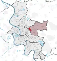 Grafenberg is an urban quarter of Düsseldorf, part of Borough 7. It borders to Gerresheim, Ludenberg, Flingern and Düsseltal. It has an area of 0.91 km2 (0.35 sq mi),[1] and 5,845 inhabitants (2020).[2]