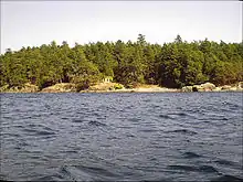 D'Arcy Island's proximity to the United States border was exploited by famous American bootlegger Roy Olmstead in the smuggling of Canadian liquor, primarily whisky, to Washington State.[5] His operation would transport the liquor from Victoria, British Columbia, to islands in Haro Strait, including D'Arcy, for later pickup by smaller craft that would move the contraband during rough weather, making it more difficult for the Coast Guard to detect them.[6]