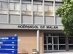 Hoërskool D.F. Malan is a public Afrikaans medium co-educational high school situated in the suburb of Boston, Bellville in the Western Cape province of South Africa - near Cape Town. It was named after D.F Malan, the prime minister of South Africa from 1948 to 1954. In 2012 and 2013, the school was included in The Cambridge University Student Guide to Excellence, a selection of 100 top schools worldwide.[1] In recent years, it has been one of the academically top-performing schools in the Western Cape.