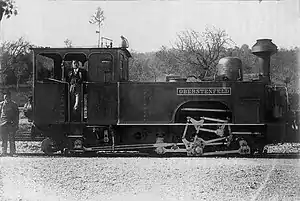 The three tank locomotives were derived from the Ts 4 and adapted to the gauge of 750 mm (2 ft 5+12 in). The wheelbase, however, was extended to 4.5 m (14 ft 9+14 in). Unlike the meter-gauge Ts 4, the fourth axle under the driver's cab was positioned at a large distance from the third axle. The locomotives had two inside cylinders arranged at an angle. They worked on the second axle, which was firmly located in the outer frame and which was designed without flanges. The valve gear, the two valve boxes with the slide valves and the motion were attached outside of the frame. The valve gear was of the Klose type and therefore had levers arranged according to the pattern of a double parallelogram. It was located below the large cutout in the water tank above the second axle. The first and fourth axes were swivelled in via the third axle, which could be moved laterally by ±31 mm (1+732 in), according to the radius of the track curve by shortening or lengthening the coupling rods using the levers in the parallelograms according to the curve.