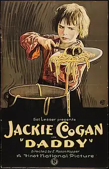 Daddy is a 1923 American silent drama film directed by E. Mason Hopper for Associated First National Pictures.[1] It stars Jackie Coogan, Arthur Edmund Carewe, Josie Sedgwick, and Cesare Gravina.[2] The script was written by Jackie Coogan's parents, Jack and Lillian. Coogan plays the son of a poor violin teacher who is separated from his father when his parents break up their marriage, only to be reunited again when his father makes it as a famous musician.[3] The film was shot on six reels.[4]