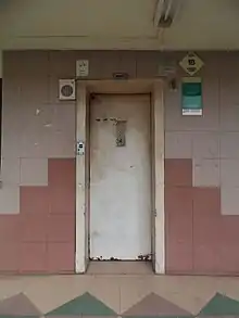 The lifts at Dakota Crescent, installed by Schindler in 1958, were in working condition until 2017 despite being very old and different from the ones used in modern HDB flats.[22] They stop only on certain floors instead of every floor and hence can be quite inconvenient for residents, especially the elderly and the handicapped. Furthermore, there are only two people left in Singapore who can give maintenance or repair these lifts if they break down. The lifts are also placed on slightly higher grounds (Figure 34) and this elevation serves as flood mitigation for the estate, which used to be prone to floods whenever it rained. These lifts were shut down in 2017.
