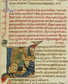 Troubadours who worked with Dalfi or sang at his court include Peirol, Perdigon, Peire de Maensac, Gaucelm Faidit, and Uc de Saint Circ; his cousin, bishop Robert of Clermont, exchanged satirical and erotic verses with him, as did Richard Coeur de Lion. One partimen between Dauphin and Perdigon marks a stage in the poetical debate, begun by Guilhem de Saint-Leidier and taken up by Azalais de Porcairagues and Raimbaut of Orange, as to whether a lady is dishonoured by taking a lover who is richer than herself. A tensó on the same subject was composed by Guiraut de Bornelh and king Alfonso II of Aragon.
