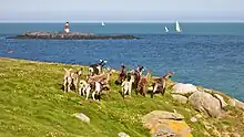 Dalkey Island is home to a colony of seals which has greatly expanded in recent years. Rabbits and a herd of wild goats live on the island also.[11] Birdwatch Ireland have established a colony of Roseate Terns on Maiden Rock just north of the Island and Ireland holds most of the European population.