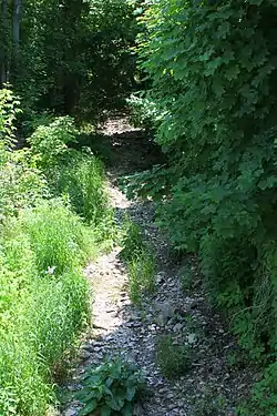 Dalmatia Creek has no named tributaries. However, it does have seven unnamed tributaries.[1] They are known as Unt 17500, Unt 17501, Unt 17502, Unt 17503, Unt 17504, Unt 17505, and Unt 17506. All of these streams are designated as impaired waterbodies for the same reasons as the main stem. Some tributaries suffer from little riparian buffering, or even none at all, and at least one has been plowed over. However, a tributary in the creek's upper reaches has some riparian buffering, reduced erosion, and relatively stable streambanks.[3]