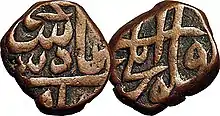 A dam was a small Indian copper coin. The coin was first introduced by Sher Shah Suri during his rule of India between 1540 and 1545, along with Mohur, the gold coin and Rupiya the silver coin.[1] Later on, the Mughal Emperors standardised the coin along with other silver (Rupiya) and gold (Mohur) coins in order to consolidate the monetary system across India. A rupee was divided into 40 dams.
