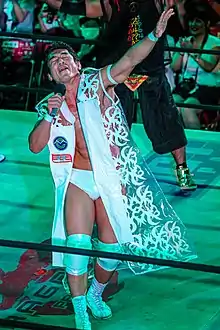 Second leader Tetsuya Endo shown here as the KO-D Openweight Champion in September 2020.