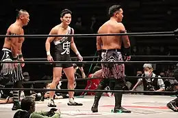 Various members of the unit are known to have made sporadic appearances in other promotions. On June 13, 2017, Ishikawa and Endo teamed up to defeat Nextream (Kento Miyahara and Yuma Aoyagi) on the second night of the Dynamite Series 2017, an event promoted by All Japan Pro Wrestling (AJPW).[37] At Machida Pro-Wrestling Festival Vol. 1, a freelance show promoted by the Japanese independent scene on September 8, 2017, Sasaki and Endo represented the unit as the defeated the team of Speed Of Sounds (Hercules Senga and Tsutomu Oosugi) in a tag team match, as well as Ishikawa teaming up with Masashi Takeda to pick up a victory over Big Japan Pro Wrestling's Daisuke Sekimoto and Yuko Miyamoto.[38] At Great Voyage in Yokohama Vol. 2, an event promoted by Pro Wrestling Noah on December 16, 2018, Nobuhiro Shimatani, who represented the stable, teamed up with Kazusada Higuchi and Kota Umeda in a losing effort to Atsushi Kotoge, Kenoh and Masa Kitamiya.[39] On May 4, 2019, at Mercury Rising, an event promoted by WWNLive, Sasaki, Takao and Endo defeated The Skulk (Adrian Alanis, A. R. Fox and Leon Ruff).[40] At Infinity: 2021 Spring, an event promoted by Active Advance Pro Wrestling (2AW) on February 7, Ishikawa represented the stable as he teamed up with Ryuki Honda in a losing effort to Kengo Mashimo and Tatsuya Hanami.[41]