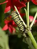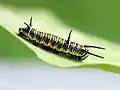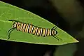 Plain tiger (Danaus chrysippus) caterpillar on a milkweed (Calotropis) species in Hyderabad, India