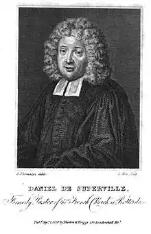 Daniel de Superville (August 1657 in Saumur – 9 June 1728 in Rotterdam), also known as Daniel de Superville père (as his son was also called Daniel), was a Huguenot pastor and theologian who fled France for the Dutch Republic in 1685 and became the minister of the Walloon church in Rotterdam. He is known particularly for his published Sermons.