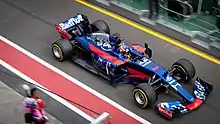 Although the opening phase of the championship looked promising, with both the car and the drivers demonstrating solid speed, regularly making it into the top ten, Kvyat's season was plagued by multiple problems, including several retirements due to technical failures and occasional driver's mistakes. On 26 September 2017, Toro Rosso announced the decision to replace Kvyat for the forthcoming Malaysian Grand Prix with Frenchman Pierre Gasly, following a sustained run of underwhelming form from the Russian. Whilst confirming the decision to stand Kvyat down, in a statement, Toro Rosso added that the driver switch should not be considered a permanent parting of the ways, saying "This is not a case of goodbye for our Daniil, as he still remains part of the Red Bull Family."[19] Kvyat returned to racing for Toro Rosso at the United States Grand Prix, following teammate Carlos Sainz Jr.'s move to Renault, and Gasly attending the 2017 Super Formula Championship finale at Suzuka. Despite securing a points finish it was not enough to secure his seat once more as Toro Rosso chose to continue with New Zealander Brendon Hartley and welcome the return of Gasly to complete the team's pair in preparation for Mexico.[20] In the week between the United States and Mexican Grands Prix, it was confirmed by Helmut Marko that Kvyat would not return to the team and would be released out of the Red Bull driver development programme.