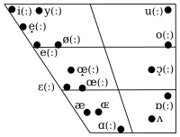 | Open-mid | ɛ | ɛː | œ | œː | ɐ | ɔ | ɔː | |