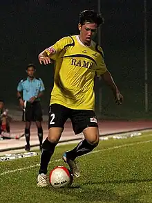 ![]() Danny Chew in action for Woodlands Wellington in a Singapore League Cup match against Gombak United at Woodlands Stadium on 30 July 2012. | |||