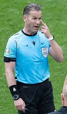 He took charge of the final of the 2012 UEFA European Under-19 Football Championship as a UEFA Elite referee.[2] On 18 August 2020, UEFA named 37-years old Makkelie as the referee for the 2020 UEFA Europa League Final between Sevilla and Inter Milan.[3] Previously, he was an additional assistant referee in the 2018 UEFA Europa League Final. He also refereed the semifinal between Brazil's Palmeiras and Mexico's UANL in the 2020 FIFA Club World Cup in Qatar.[4] Makkelie was selected as a referee for the UEFA Euro 2020, where he was in charge of two group stage matches, the R16 clash between England and Germany and the Wembley semi-final between England and Denmark. Danny Makkelie was also present as a referee during the 2022 FIFA World Cup in which he was the referee for two group stage matches.