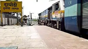 Dapodi railway station (Station code: DAPD) is a railway station on Mumbai–Chennai line. It has two platforms and a foot over bridge. It serves the neighbourhood of Dapodi.