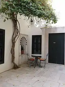 One of the members of the Belhouane family served as a dey during the Ottoman period in the 17th century.[1] This palace has since been transformed into a guest house which opened in 2005.[2] The current hotel has twelve bedrooms.[2]