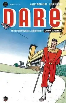 "Dare", also known as Dare - The Controversial Memoir of Dan Dare, Pilot of the Future[lower-alpha 1] is a British dystopian science fiction comic story, starring the character Dan Dare . Written by Grant Morrison and illustrated by Rian Hughes, the story originally began publication in the Fleetway Publications anthology Revolver in July 1990 before concluding in Crisis. The story is a revisionist take on Dare, using the character to satirise the government of Margaret Thatcher, and the treatment of the character's creator Frank Hampson.